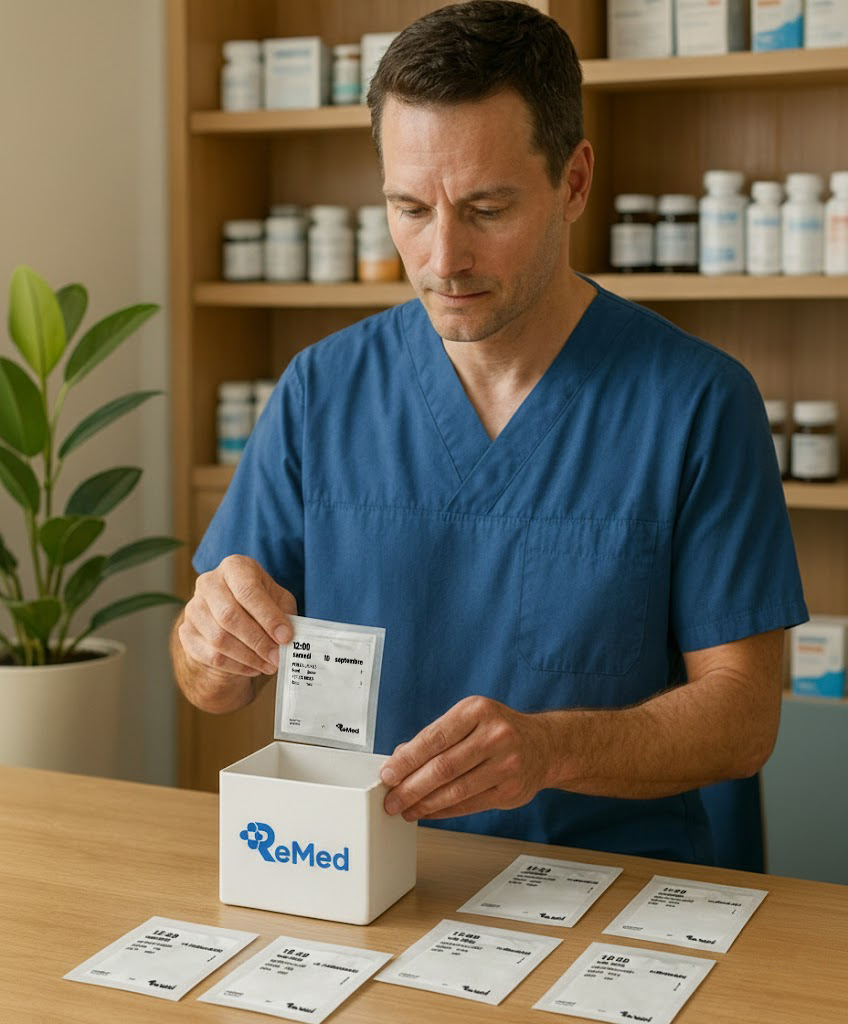 Grâce à ReMed, vos médicaments sont préparés, organisés et livrés chez vous en toute sécurité. Ordonnances renouvelées, doses personnalisées, conseils d’experts : profitez d’un accompagnement pharmaceutique complet, sans effort.