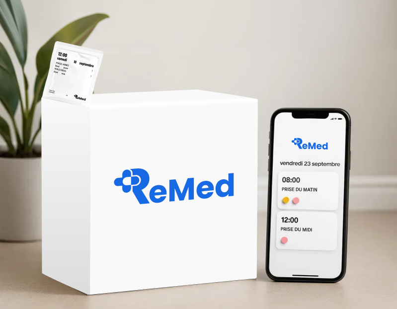 Ensuite, vous recevez votre box ReMed, livrée à domicile ou disponible dans votre pharmacie partenaire. Fini les files d’attente au guichet !